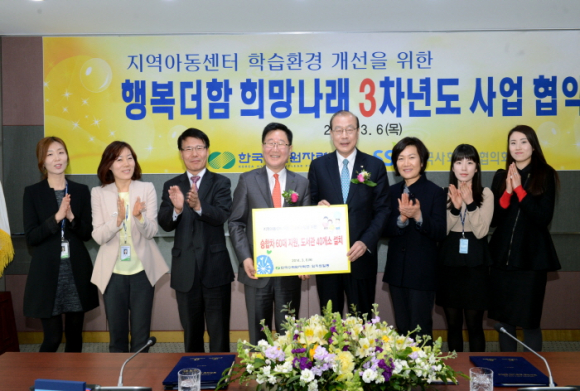 한수원은 6일 오후 2시 삼성동 서울사무소에서 ‘행복더함 희망나래 3차년도 협약식’을 갖고, 임직원과 회사가 매칭그랜트 형식으로 모금한 ‘민들레 홀씨기금’ 30억원을 전국 지역아동센터 아동·청소년의 안전한 귀가와 환경개선을 위해 써달라며 한국사회복지협의회(회장 차흥봉)에 전달했다.