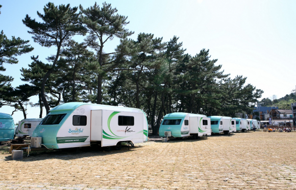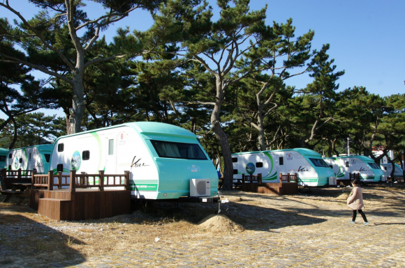 캠핑장은 16,000㎡의 송림 속에 18대의 카라반과 35면의 캠핑사이트, 세척장, 그릴, 야외식탁, 놀이터, 그네벤치, 주차장 등 편의시설이 완비되어 있어 집처럼 안락하게 즐길 수 있다.