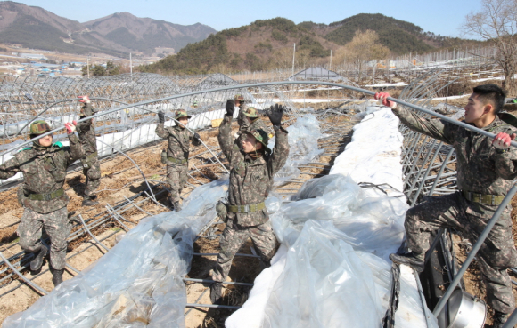 포항시는 지난 2월 폭설로 가장 많은 피해를 입은 죽장 상옥 지역에 육군50사단, 해병대 1사단 등 군 병력을 투입해 10일부터 14일까지 5일간 비닐하우스 철거 등 피해농업시설 복구지원에 나섰다.