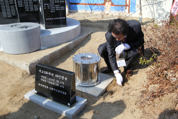 모교 발전 위해 기원비 건립 및 타임캡슐 매설