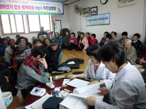 상주시보건소에서는 14일 함창읍 태봉리 마을회관에서 주민 60여명을 대상으로 「담배연기 없는 행복마을 만들기」 주민 설명회를 가졌다.