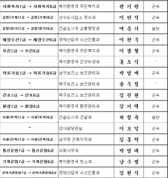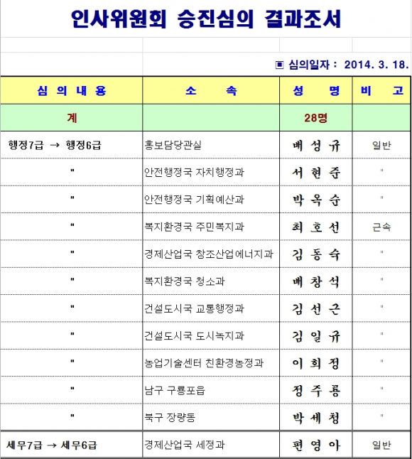 포항시, 인사위원회 승진심의 결과조서