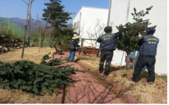 현직 조경기술자 활용 복지 시설 봄맞이 정원 새단장에 나서