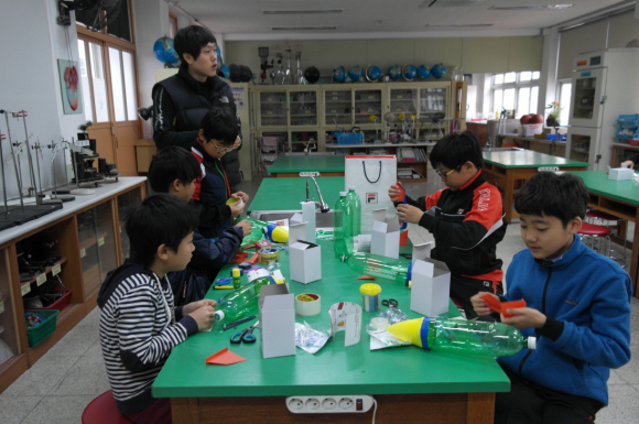 먼저 1~3교시에는 과학상상화 그리기 대회(1~6학년)와 로켓과학대회가 열렸다. 여러 가지 과학적 상상을 하얀 도화지 위에 펼치는 상상화 그리기 대회에 학생들은 즐겁고 진지하게 참여하였다. 이와 더불어 과학실에서는 로켓과학대회가 열려 물로켓의 과학적 원리에 대해 알아보고 직접 만들어보는 시간을 가졌다.
