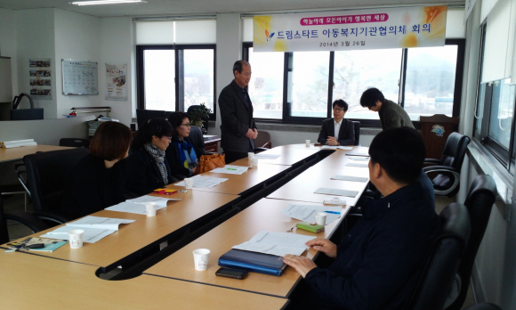 이번 아동복지기관협의체 회의는 2014년 드림스타트 주요사업 추진계획 설명과, 취약계층 아동통합 DB구축을 통해 복지서비스 연계ㆍ지원을 하고, 드림스타트사업 전문성 강화, 민관 상호네트워크 형성 및 복지자원의 체계적 활용방안에 대해 논의하여 아동복지 향상을 도모하고자 실시되었다.