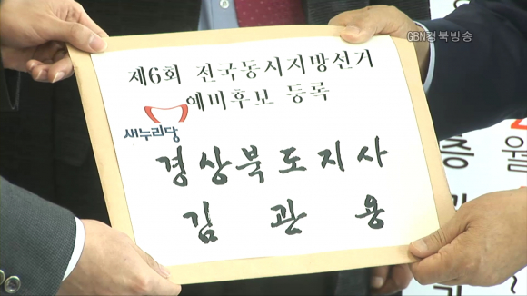 27일 오전 9시 30분 김관용 지사는 경북선거관리위원회를 찾아 경북도지사 예비후보 등록 신청서를 제출한 뒤 도청 기자실에서 기자회견을 갖고 “현행 선거법상 각종 제약으로 현장에서 도민 한 분 한 분 찾아뵙고 그들의 희망과 바람을 듣는 것이 어려워 결단을 내렸다”며 후보 등록에 대한 의미를 설명하고, 이제는 도민 곁으로 가겠다고 역설했다.