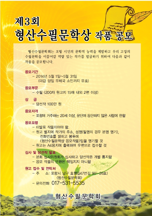 형산수필문학상에 도전해보세요
