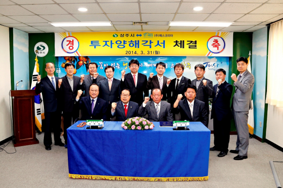 상주시와 이성진 ㈜예스코리아 대표이사는 3월 31일 시청 소회의실에서 함창제2농공단지내 55억원 규모의 공장설립을 위한 투자양해각서(MOU)를 체결했다.