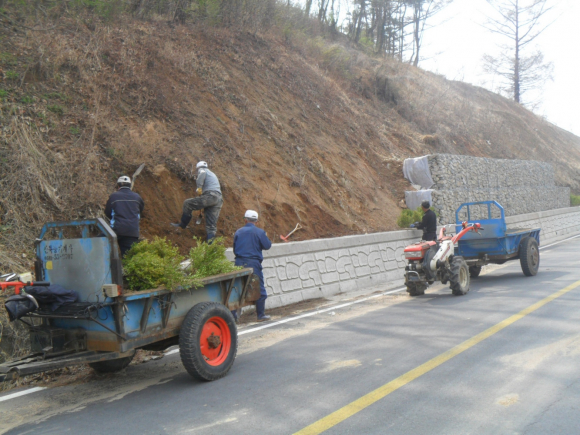 이날 작업에 참여한 주민들은 자신의 경운기와 차량에 제각기 회양목을 한가득 실어 식재현장으로 옮긴 후 도로양안에 정성들여 심고, 물 주고 가꾸는 일련의 식재과정을 일사불란하게 전개 했다.