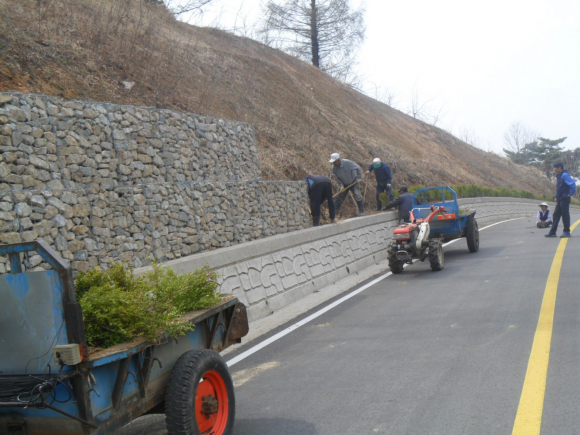 산북면 가곡리(이장 장덕양)는 지난 3월 31일 10여명의 마을주민들이 참석한 가운데 가곡리 ~ 월천리 연결도로 500m구간에서 푸르미공원화사업과 특색있는 마을 가꾸기 사업의 일환으로 ″늘푸른 가재골 만들기사업″을 추진했다.