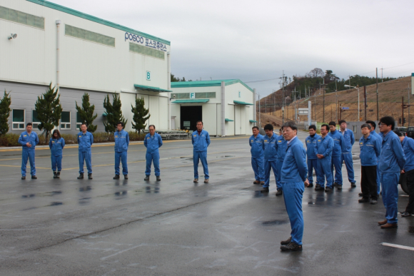 |  | | | ↑↑ 포스코휴먼스 임직원들이 아침체조 후 사무동 앞마당에서 3분 스피치를 경청하고 있다. | | ⓒ GBN 경북방송 | | 또한 포스코휴먼스 스틸하우스사업부문은 이러한 형태의 부서간 교류활동 이외에도 매일 오전 8시 40분부터 전 임직원이 사무동 앞마당에 모여 음악에 맞추어 국민체조 후 하루에 한 명씩 릴레이로 3분간 현재 실행중인 PSC(Personal Score Card)를 바탕으로 올 한해 개인적인 다짐과 회사 직무에 관련된 목표 및 계획 등을 발표하며 개인적인 부분도 공유하고 스스로의 약속을 지키기 위해 새롭게 마음을 다시는 시간도 가지고 있다.