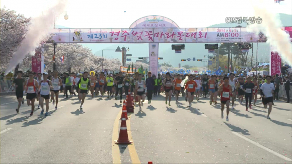 경주시와 일본 요미우리신문 서부본사가 공동으로 주최하고 경주시체육회가 주관한 『제23회 경주벚꽃마라톤대회』는 지난 4월 5일(토) 오전 8시 경주세계문화엑스포광장 앞 도로에서 국내 마라토너 12,751명과 31개국 1,300명의 외국인 등 총14,051명이 참가해 신라인의 숨결을 같이 느끼면서 젊음과 건강을 다지는 힘찬 레이스를 펼쳤다.