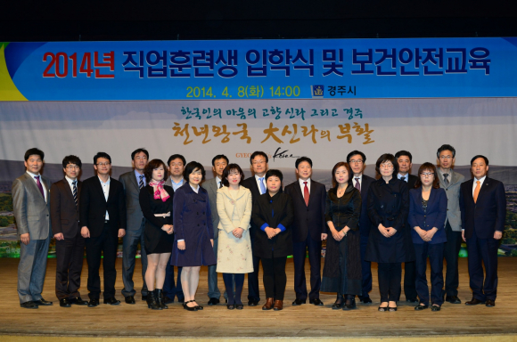 경주시는 8일 서라벌문화회관에서 훈련생 150명, 훈련기관 관계자 15명, 공공근로자 160명, 지역공동체근로자 80명 등 400여명이 참석한 가운데 직업훈련생 입학식 및 보건안전교육을 실시했다.