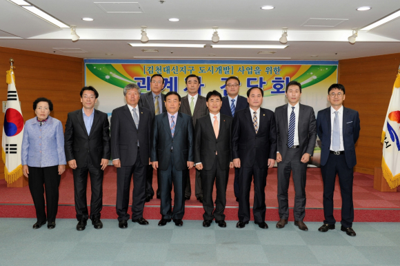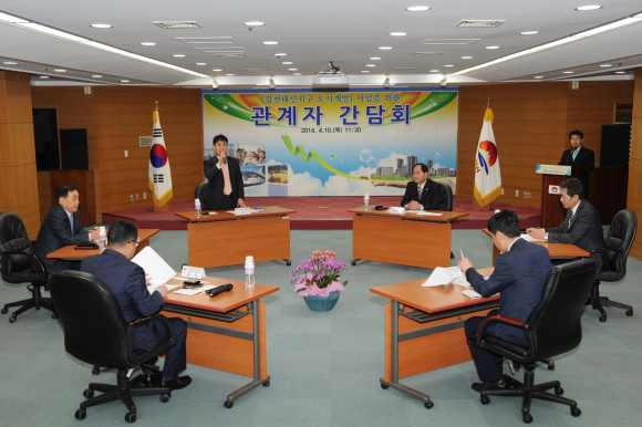 김천시에서는 시민들의 숙원사업이고 지역발전의 걸림돌이 되어온 지역개발의 확고한 의지를 갖고 포기하지 않고 지난 1여년간 민간개발 건설사 및 투자자를 계속하여 물밑접촉을 하는 등 지속적인 노력을 기울여 온 결과 (주)대우건설, 바로투자증권(주), (주)한국투자산탁으로부터 마침내 본 사업에 참여하겠다는 약속을 받아내게 되었으며, 이날 한 자리에 모여서 향후 사업추진과정에서 필요한 현안문제 등에 대하여 간담회를 가지게 된 것이다.