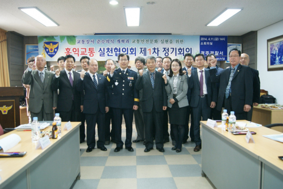 경주경찰서(서장 원창학)는 11일(금) 오후 2시 경찰서 소회의실에서 경주시청, 경주교육지원청, 한국원자력환경공단, 모범운전자회, 녹색어머니회 등 17개 기관·단체 교통관련 대표자들이 참석한 가운데 홍익교통 실천협의회 제1차 정기회의를 개최했다. 홍익교통 실천협의회는 교통사고예방을 위하여 각 기관ㆍ단체의 협력이 필요하다는 인식하에 구성되었으며, 근본적인 의식개혁 등 공동실천과제를 토의하고 전국 최상위권인 경주의 교통사망사고를 줄이기 위한 대책을 논의했다.