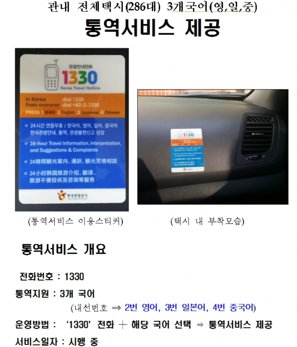 문경시 관내 전체택시(286대) 3개국어(영,일,중) 통역서비스 제공키로