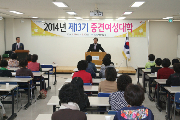 포항시는 16일 평생학습원 여성문화관에서 지역 중년여성들에게 다양한 교육과 정보를 제공하는 ‘2014 제13기 중견여성대학 개강식’을 가졌다.