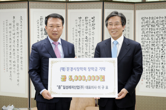 일성레저산업(주) 이규표 대표이사는 17일 고향의 인재육성과 문경발전을 위해 (재)문경시장학회에 장학금 5백만원을 기탁했다.