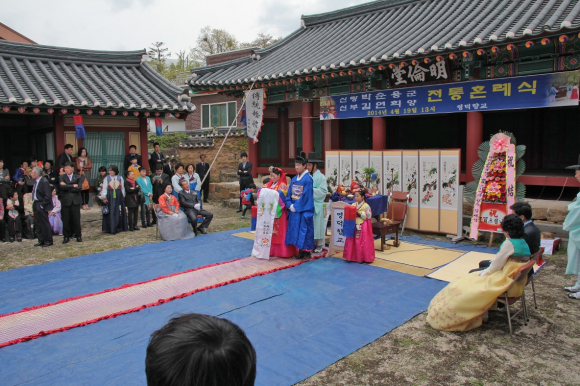 이는 영덕군(군수 김병목)과 영덕향교(전교 김진업)는 우리의 옛 전통문화를 보존하기 위한 사업의 일환으로 지역민과 출향인들의 신청을 받아 2009년부터 시행하고 있는 사업으로 이번 혼례식은 올해 들어 가장 먼저 열린 것이다. 다음 전통혼례는 5월 25일 열릴 예정이다.