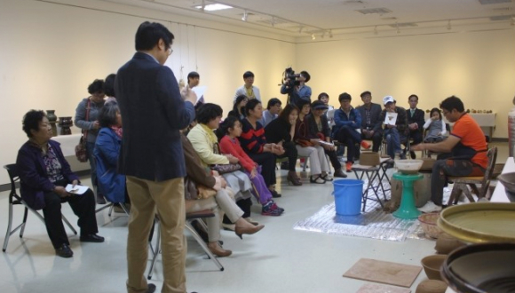 |  | | | ⓒ GBN 경북방송 | | (재)경주문화재단은 2014 경주작가 릴레이展의 두 번째 주자인 강창구 작가가 23일 ‘작가와의 만남’ 두 번째 시간을 마련한다고 밝혔다. 강작가는 이번 전시에서 신라시대 토기를 창조적으로 변용시킨 ‘굽 높은 접시’를 매주 작품을 교체하며 선보이고 있는데, 23일(수) 오후 4시에 예정되어 있는 ‘작가와의 만남’ 시간에 실제로 작품 제작과정을 보여준다. 그간 작가와의 만남은 해당 작가들이 스탠드 강의 위주로 진행하였는데 이번에 강작가가 파격적인 시도를 하는 것이다. 강작가는 지난 9일(수) 첫 번째 작가와의 만남 시간에서 물레를 직접 돌리는 실전 강의(사진)로 참가자들의 높은 호응을 이끌어 냈다. 참가자 중 약간 명은 실제 토기를 만들어보는 행운을 누리기도 했다. 경주작가 릴레이展은 지역 예술가들의 창작의욕을 고취시키고, 전시활동공간을 제공하고자 작년에 처음 기획된 전시로, 연말까지 경주예술의전당 알천전시장(B1)에서 13명의 공모선정 작가가 릴레이식으로 전시를 진행한다. 강창구 작가의 도예전은 27일(일) 막을 내리고, 29일(화)부터는 김현숙 작가가 바통을 받아 진행한다. 전시 시간은 오전 10시부터 오후 6시까지이며, 매주 월요일은 휴관이다. 입장료는 무료. 문의 1588-4925. |