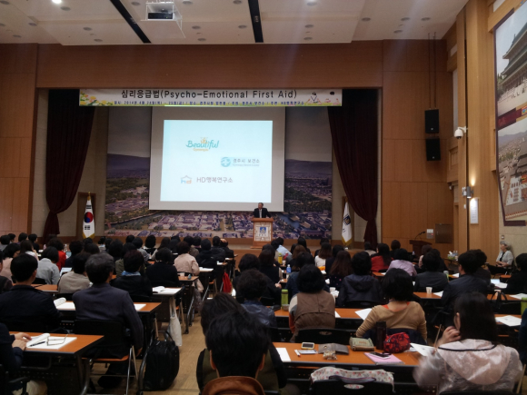 5-step 힐링프로젝트 4번째 프로그램으로 세월호 사태와 경주 마우나 리조트 사태와 같은 위기 상황에서 심리적, 인지적, 정신적인 충격을 빠르게 처리하여 주는 심리응급법을 경주를 비롯한 전국의 전문 상담사들과 함께 이론 및 실습을 하는 시간을 가졌다.