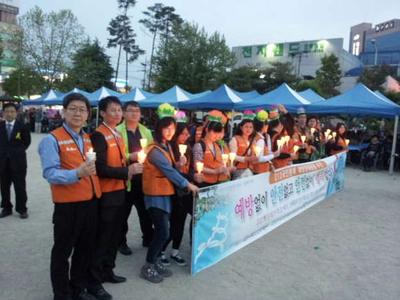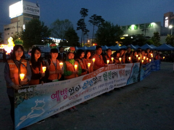 사단법인 안전지킴이운동본부(대표 김상호)와 천주교 대구대교구 제4대리구(사제대표 죽도성당 원유술야고보 주임신부)는 25일 포항죽도초등 운동장에서 거행된 불기 2558년 부처님오신날 봉축법요식에서 세월호 침몰 대참사로 인하여 희생자들의 명복과 실종된자들의 무사귀한을 바라는 추모 캠페인을 전개했다.