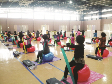 주부들이 열심히 운동에 매진하는 것은 포항체력 인증센터에서 체력 인증 검사를 받고 평가결과에 따라 마련해 준 짐볼과 밴드를 이용한 근력강화 프로그램에 따른 것이다.
