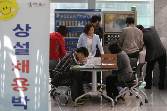 포항시는 29일 포항시일자리종합센터에서 지역기업의 구인난을 해결하고, 구직자와 구인업체의 만남의 장을 마련하기 위한 ‘4월 상설채용박람회’를 열었다.
