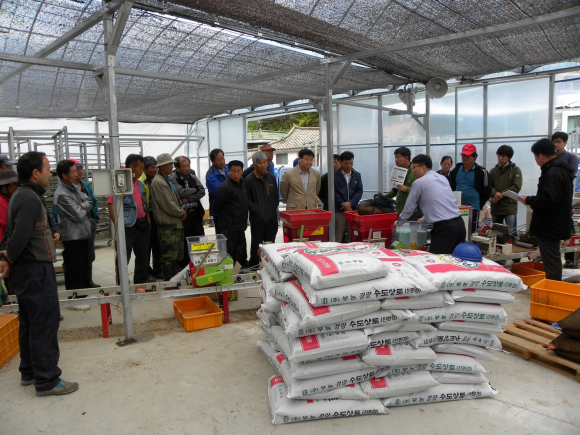 봉화군농업기술센터(소장 박만우)에서는 29일 벼 육묘장 운영 농업인과 관련공무원 등 30여명이 참석한 가운데 벼 파종과정에서 시비와 병해충을 동시에 처리하는 일괄처리시스템을 구축하여, 봉화읍 문단리 이동교 농가에서 연시회를 개최했다.