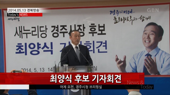 최양식 후보는 지난13일 경주시청 브리핑실에서 기자회견을 열고 "지방선거에서 새롭게 도입된 경선이 진행되는 동안 변함없이 지지해준 경주시민에게 깊은 감사의 말을 전한다"고 말했다.