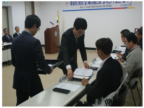 경주시선거관리위원회(위원장 김현환)는 16일 오후7시 2층 회의실에서 경주시장선거후보자 5명이 참석한 가운데 정책선거 실현을 위한 메니페스토협약식을 개최했다.