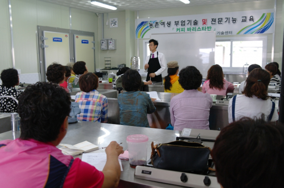 |  | | | ⓒ GBN 경북방송 | | 성주군에서 농업기술센터 (소장 장상영) 주최로 농촌여성들의 전문기술 습득 및 일자리 창출을 지원하고자 16일「커피바리스타반」, 19일 「전통민화그리기반」교육 개강식을 각각 가졌다. 각 교육과정은 지난 4월부터 희망자를 접수받아 관내 여성 24명의 신청자가 참석하여 교육을 진행하고 있다. 커피바리스타반은 7월 25일까지 매주 금요일 총 10회 과정으로, 커피의 역사 등 이론교육과 핸드드립, 로스팅, 추출법 등 실습과정으로 운영된다. 전통민화그리기반은 8월 4일까지 총 12회 과정으로 민화그리기, 민화를 이용한 소품제작 등 전통 방식 그대로 민화그리기 수업을 통해 여성들에게 우리의 전통문화를 이해하고 계승하는 좋은 계기가 될 것으로 기대된다. 농촌여성 부업기술 및 전문기능 교육은 농촌여성들에게 전문기술 습득 으로 경제활동 기반을 조성하고 농촌생활의 활력화를 도모하고자 교육을 실시하고 있으며 6월부터는 「전통음식전문가 양성과정」, 「생활도자기 기초반」을 개설하여 추진할 계획이다.