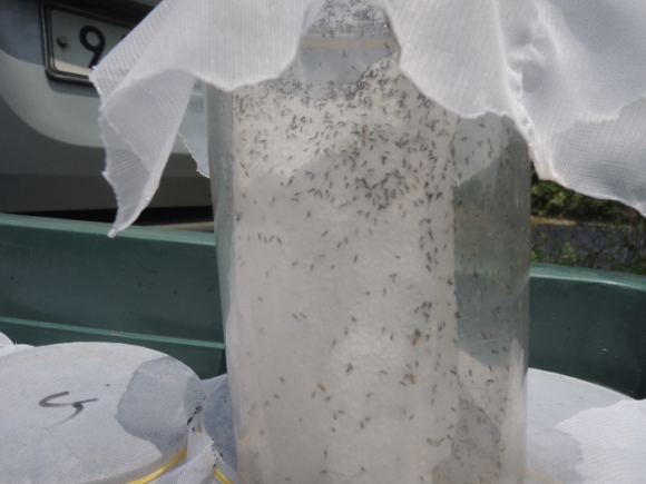해충인 솔잎혹파리가 지금 산란한 알 속에 천적인 먹좀벌이 산란하여 솔잎혹파리가 부화되지 않도록 하는 생물학적 방제법으로 농약의 독성 피해를 줄이고 익충 및 양봉 등을 보호 할 수 있어 앞으로 확대 시행하고,