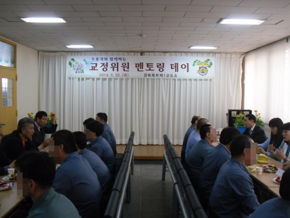 경북북부제1교도소(소장 김안식)는 5월 20일 소내 사회복귀과 교육실에서 교정위원, 수용자 각 16명을 대상으로 수용자와 함께하는 교정위원 멘토링 데이 행사를 시행했다. 따스한 햇살이 가득한 5월을 맞아 시행된 교정위원 멘토링 데이는 교정위원과 수용자간 1:1 자매결연을 함으로써 수용자의 심성순화 및 정서적 안정을 도모하고 교정위원들의 실질적 교화활동 참여를 확대하는 행사로 이날 행사에서 교정위원과 수용자간 서로 공감하고 소통하는 대화의 장이 마련되었다. 행사에 참여한 위원은 “수용자와 마음에 있는 진솔한 이야기를 나눌 수 있는 유익한 시간이었으며 앞으로도 지속적인 멘토활동을 하겠다.”고 약속했다. 김안식 소장은 “오늘은 멘토링 데이 행사를 통해 교정위원과 수용자 모두에게 특별한 날이 되었다.”며 “앞으로도 수용자의 심성순화와 수용생활의 안정을 위해 이 행사를 지속적으로 추진하겠다.”고 말했다.