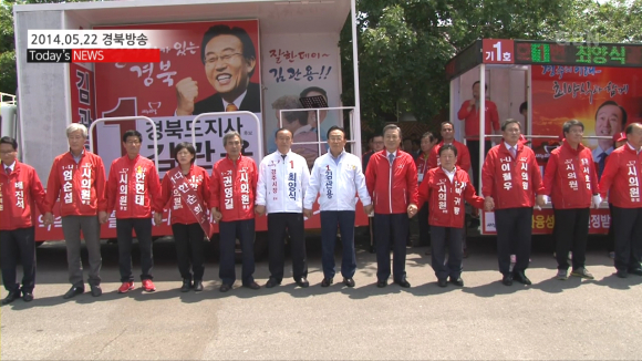 |  | | | ⓒ GBN 경북방송 | | 한편 경상북도 전역을 누비고 있는 새누리당 경상북도 도지사 김관용 후보가 이날 결의대회에 참석해 모든 후보들에게 “당선되는 순간까지 최선을 다하자”며 활기찬 연설로 후보자들과 참석자들로부터 열렬한 박수를 받았다.