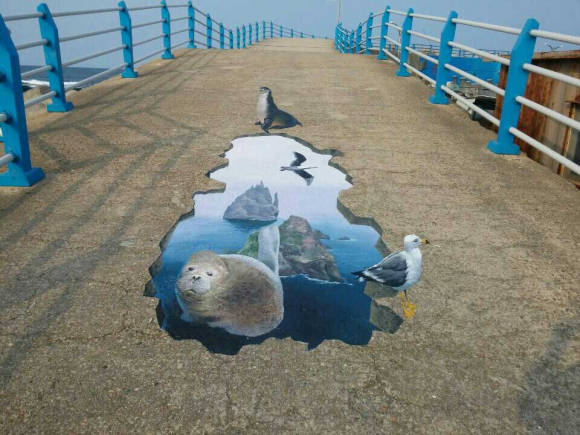 이번 대보항을 단장한 벽화는 평면의 그림이 실제인 것처럼 보이도록 음영법과 원근법, 전․후퇴색의 조합으로 그려낸 트릭아트(Trick Art)이다.