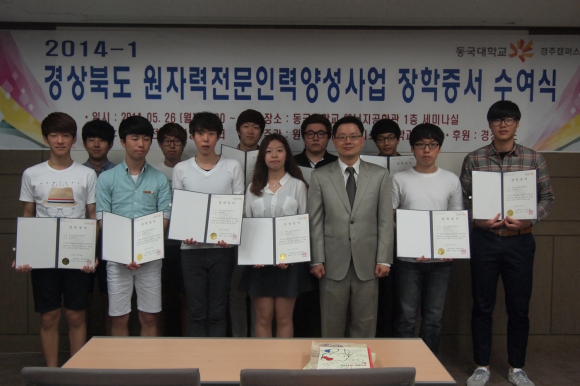 동국대학교 경주캠퍼스(총장 이계영) 원자력·에너지시스템공학과(학과장 류준형)는 지난 26일 교내 에너지공학과 세미나실에서 원자력·에너지시스템공학과 1학년 학생 12명에게 2백만원씩 원자력 전문인력 양성을 위한 장학금을 수여했다.