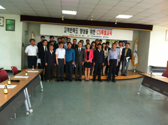 대구은행 상주지점(지점장 배인규)은 5월27일 한국농어촌공사 상주지사(지사장 강경학)에서 전직원들을 대상으로 고객만족도 향상을 위한 CS교육을 실시 하였다.