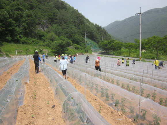 일손돕기에 참여한 직원들은 5필지(24632㎡) 정도의 고추밭에서 무더운 날씨에도 불구하고 구슬땀을 흘리면서 고추밭 지주대 세우기를 하여 농가의 일손부담을 덜어 주었으며 아울러 일년 농사가 잘되기를 기원했다.