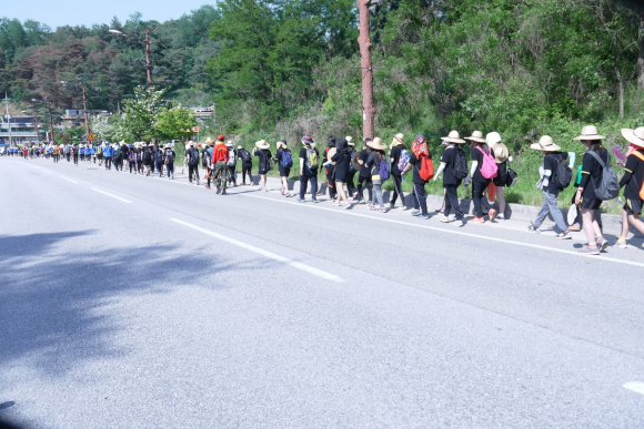 이날 대장정은 1․2학년 학생 230명과 교사20명, 안전도우미로 봉화경찰서․해병전우회․봉화군보건소․봉화소방파출소 119안전센타 등이 참석하였는데, 순례단은 학교를 출발하여 석천정․청암정․쌍벽당․워낭소리 촬영지․도암정 등 20Km를 순례하면서 자연환경 보호 활동을 함께 전개하며 향토사랑 정신을 고취했다.