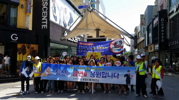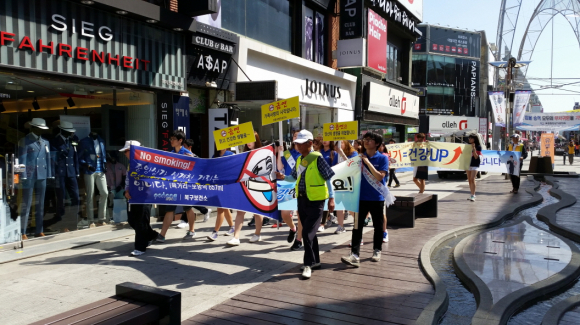 이날은 북구보건소와 중앙상가 상인회, 한국음식업중앙회 포항북구지부, 은빛자원봉사단, 선린대 금연동아리 등 약 100여명이 참석해 금연 홍보 현수막을 게첨하고, 거리캠페인을 전개했으며 실개천거리의 법적 금연거리 지정에 대한 대시민 설문조사를 실시했다.
