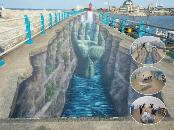 시작은 포항시청 페이스북이었다. 27일 포항시 홍보담당관실에서는 대보항의 신기한 트릭아트 사진을 페이스북에 올렸다.