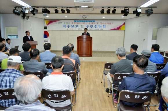 산양면 소재지 종합정비사업은 농림축산식품부로부터 2013. 10월에 신규사업으로 확정되어 2014년부터 2017년까지 4년간 추진되며 총사업비 70억을 투입하여 소재지에 생활편익시설, 문화·복지시설 등을 종합적으로 확충하는 사업으로 침체되어 있는 면 소재지에 새로운 활력을 불어 넣어 중심거점 공간으로 활성화를 시킴으로써 지역 주민들이 더욱더 행복한 삶을 살 수 있는 정주여건이 조성 될 것으로 기대하고 있다.