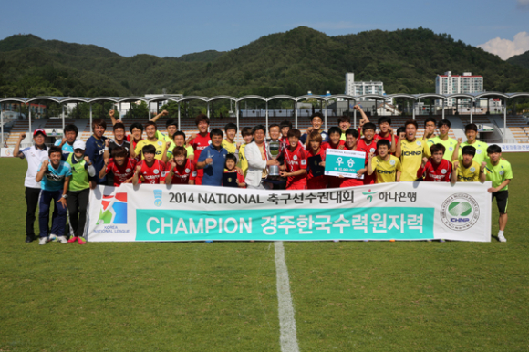 경주한수원축구단이 지난 5월 30일부터 6월 12일까지 14일간 열린 「하나은행 2014 내셔널리그축구선수권대회」 결승에서 강릉시청을 꺽고 우승컵을 들어 올렸다.