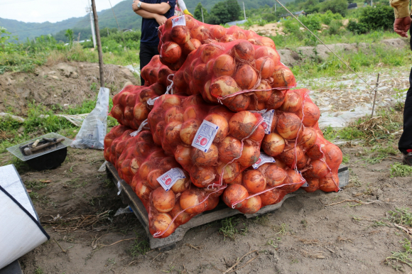 최근 김천시는 본격적인 양파 수확철을 맞아 곳곳에서 양파 수확의 손길이 바쁜 가운데 올해 노균병과 이른 고온현상으로 양파 구가 비대하지 않아 생산량 감소와 양파가격 폭락이 우려되고 있다.