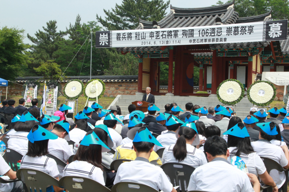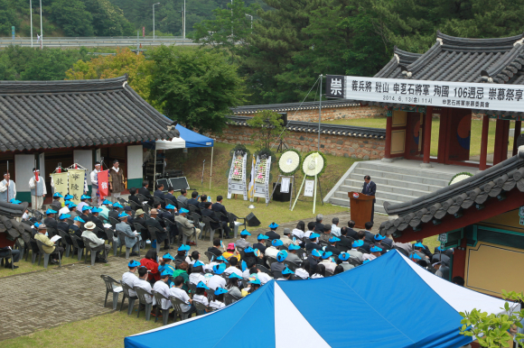 영덕군(군수 김병목)은 지난 13일 오전 10시 신돌석 장군 유적지 내 충의사에서 신돌석장군의 유족, 추모위원, 광복회원, 학생, 주민 등 300여명이 참석한 가운데 의병장 장산 신돌석장군의 순국 106주기를 기념하는 숭모제향행사를 개최했다.