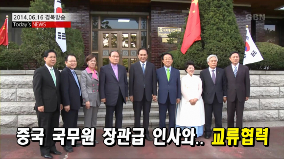 김관용 도지사는 6.4 지방선거 후 첫 외빈인 중국 차이 밍짜오 주임 일행의 방문에 환영의 뜻과 함께 차이 주임이 기자 출신에서 언론을 관장하는 장관으로 발탁된 것은 바로 최근 시진핑 주석이 말하는 ‘중국의 꿈(中國夢)’을 실현한 것이라고 말했다.