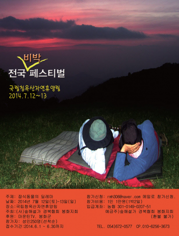 2014 전국 비박 페스티벌 7.12~13(2일간) 국립 봉화청옥산자연휴양림에서 개최