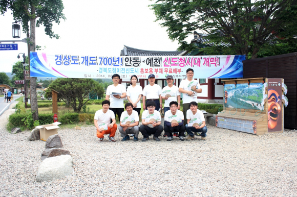 경상북도개발공사(사장 김영재) 신도시건설본부 직원 10여명은 지난 21일 토요일, 안동 하회마을에서 경상도 개도 700주년과 안동․예천 신도청 시대 개막에 따른 홍보활동을 전개했다.