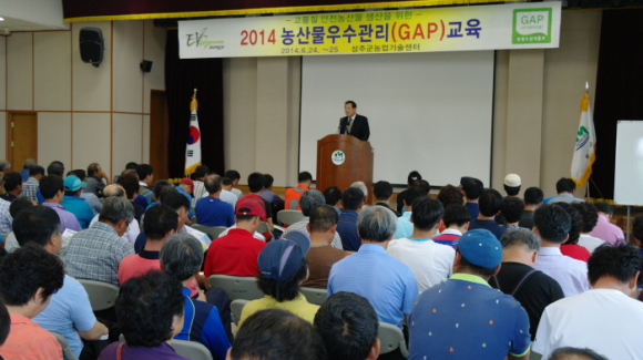 |  | | | ⓒ GBN 경북방송 | | 성주군 농업기술센터(소장 장상영)는 지난 24~25일 생산단계에서 판매단계까지의 농산식품 안전관리체계를 구축하여 소비자에게 안전한 농산물을 공급하기 위한 농산물 우수관리(GAP) 인증 교육을 인증농가 및 희망농가 400명을 대상으로 실시했다. 농산물우수관리제도(GAP)란 우수 농산물에 대한 체계적 관리와 안정성 인증을 위해 2006년부터 시행된 제도로 농산물의 생산부터 판매 단계에 이르기까지 농약ㆍ중금속ㆍ미생물 등 위해요소를 종합적으로 관리함으로써 전문인증기관의 기준에 부합하는 농산물에 대해 인증을 부여하는 제도를 말한다.